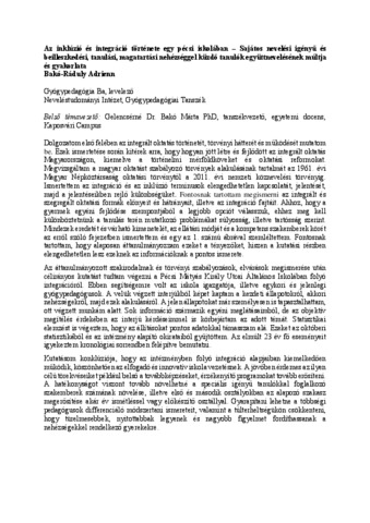 Bakó-Ráduly, Adrienn (2024) Az inklúzió és integráció története egy pécsi iskolában – Sajátos nevelési igényű és beilleszkedési, tanulási, magatartási nehézséggel küzdő tanulók együttnevelésének múltja és gyakorlata. Diploma Tézis, Magyar Agrár- és Élettudományi Egyetem.