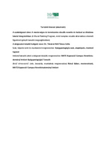 Timárné Réti, Timea Csilla (2024) A mesterséges és természetes vizuális nevelés és hatásai az általános iskolai integrációban (A Mural Painting Program, mint komplex vizuális alternatíva a kiemelt figyelmet igénylő tanulók megsegítésében). Diploma Tézis, Magyar Agrár- és Élettudományi Egyetem.