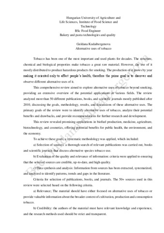 Kudaibergenova, Guldana (2024) Alternative uses of tobacco. Diploma Tézis, Magyar Agrár- és Élettudományi Egyetem.
