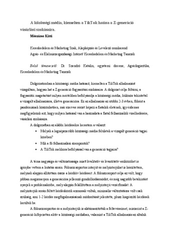 Mészáros, Kitti (2024) A közösségi média, kiemelten a Tiktok hatása a Z-generáció vásárlási szokásaira. Diploma Tézis, Magyar Agrár- és Élettudományi Egyetem.
