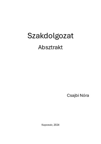 | Intézet: | KAPOSVÁRI CAMPUS |