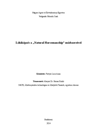 Pistyúr, Luca Anna (2024) Lókiképzés a "Natural Horsemanship" módszereivel. Diploma Tézis, Magyar Agrár- és Élettudományi Egyetem.