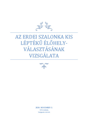 Tóth, Dániel (2024) Az erdei szalonka kis léptékű élőhely választásának vizsgálata. Diploma Tézis, Magyar Agrár- és Élettudományi Egyetem.