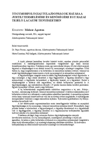 Molnár, Ágoston (2024) Tőgymorfológiai tulajdonságok hatása a juhtej termelésére és minőségére egy hazai tejelő lacaune tenyészetben. Diploma Tézis, Magyar Agrár- és Élettudományi Egyetem.