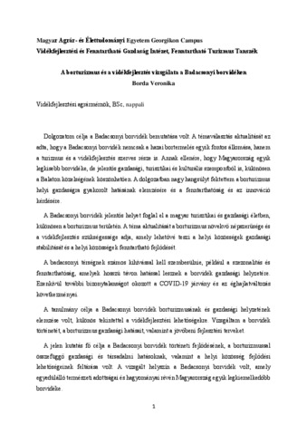 Borda, Veronika (2024) A borturizmus és a vidékfejlesztés vizsgálata a Badacsonyi borvidéken. Diploma Tézis, Magyar Agrár- és Élettudományi Egyetem.