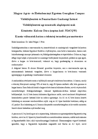Kulcsár, Dóra (2024) Kazein változatok hatása a tehéntej termelési paramétereire. Diploma Tézis, Magyar Agrár- és Élettudományi Egyetem.