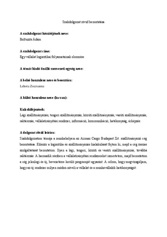 Boltuzits, Ádám (2025) Egy vállalat logisztikai folyamatainak elemzése - Az Airmax Cargo új vállalatirányítási rendszerének. Diploma Tézis, Magyar Agrár- és Élettudományi Egyetem.