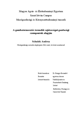 Schulek, Andrea (2024) A gombatermesztés termelői sajátosságai gazdasági szempontok alapján. Diploma Tézis, Magyar Agrár- és Élettudományi Egyetem.