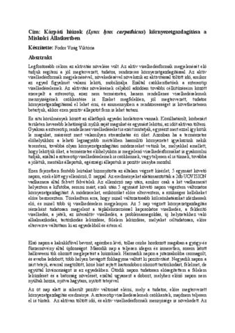 Fodor, Virág Viktória (2024) Kárpáti hiúzok (Lynx lynx carpathicus) környezetgazdagítása a Miskolci Állatkertben. Diploma Tézis, Magyar Agrár- és Élettudományi Egyetem.