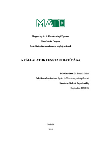 Batbold, Buyankhishig (2024) A vállalatok fenntarthatósága. Diploma Tézis, Magyar Agrár- és Élettudományi Egyetem.