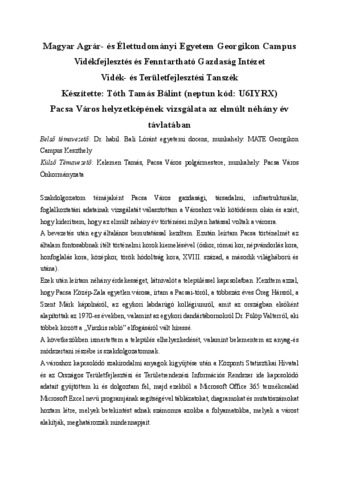 Tóth, Tamás Bálint (2024) Pacsa Város helyzetképének vizsgálata az elmúlt néhány év távlatában. Diploma Tézis, Magyar Agrár- és Élettudományi Egyetem.