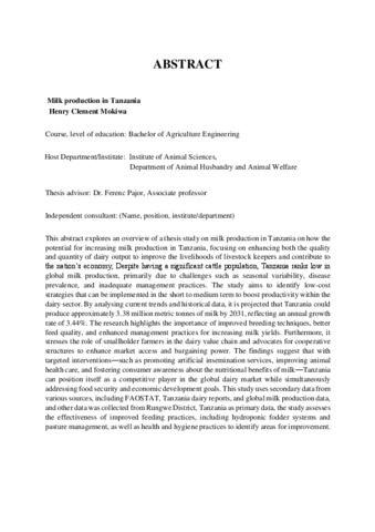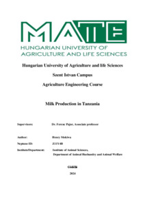 Mokiwa, Henry Clement (2024) Milk production in Tanzania. Diploma Tézis, Magyar Agrár- és Élettudományi Egyetem.