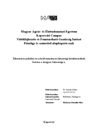 Madarász, Dzsenifer Míra (2024) Monetáris politika és a kedvezményes lakossági hiteltermékek hatása a magyar lakosságra. Diploma Tézis, Magyar Agrár- és Élettudományi Egyetem.