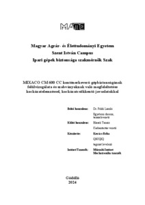 Gyenge-Kovács, Réka (2024) MIXACO CM 600 CC konténerkeverő gépbiztonságának felülvizsgálata és szabványoknak való megfeleltetése kockázatelemzéssel, kockázatcsökkentő javaslatokkal. Diploma Tézis, Magyar Agrár- és Élettudományi Egyetem.