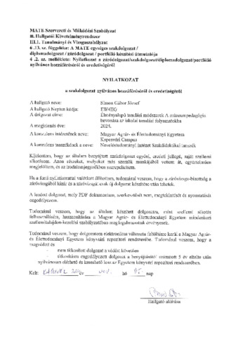 Simon, Gábor József (2024) Élményalapú tanulási módszerek A múzeumpedagógia bevonása az iskolai tanulási folyamatokba. Diploma Tézis, Magyar Agrár- és Élettudományi Egyetem.