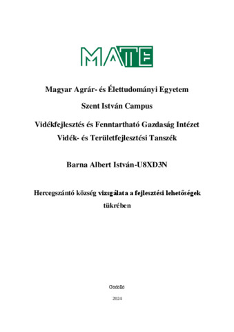Barna, Albert István (2024) Hercegszántó község vizsgálata a fejlesztési lehetőségek tükrében. Diploma Tézis, Magyar Agrár- és Élettudományi Egyetem.