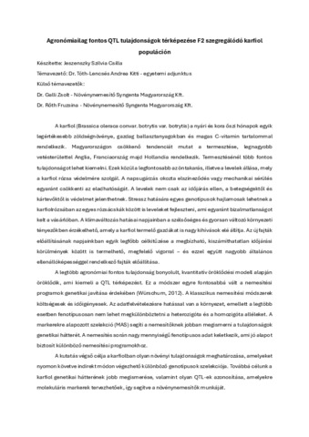 Jeszenszky, Szilvia Csilla (2024) Agronómiailag fontos QTL tulajdonságok térképezése F2 szegregálódó karfiol populáción. Diploma Tézis, Magyar Agrár- és Élettudományi Egyetem.