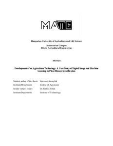 Intavong, Anonglak (2024) Development of an Agriculture Technology: A Case Study of Utilizing Digital Imaging and Machine Learning for Identifying Maize Diseases. Diploma Tézis, Magyar Agrár- és Élettudományi Egyetem.