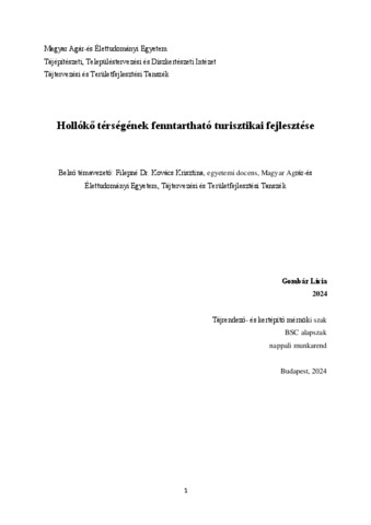 Gombár, Lívia (2024) Hollókő térségének fenntartható turisztikai fejlesztése. Diploma Tézis, Magyar Agrár- és Élettudományi Egyetem.