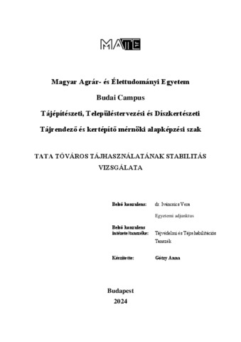 Gótzy, Anna (2024) Tata Tóváros tájhasználatának stabilitás vizsgálata. Diploma Tézis, Magyar Agrár- és Élettudományi Egyetem.