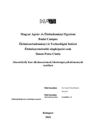 Simon, Petra Cintia (2024) Almatörköly liszt alkalmazásának lehetőségei péksütemények esetében. Diploma Tézis, Magyar Agrár- és Élettudományi Egyetem.