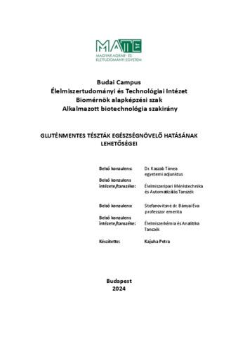 Kajuha, Petra (2024) Gluténmentes tészták egészségnövelő hatásának lehetőségei. Diploma Tézis, Magyar Agrár- és Élettudományi Egyetem.