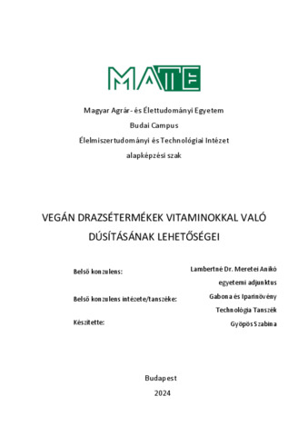 Gyöpös, Szabina (2024) Vegán drazsétermékek vitaminokkal való dúsításának lehetőségei. Diploma Tézis, Magyar Agrár- és Élettudományi Egyetem.