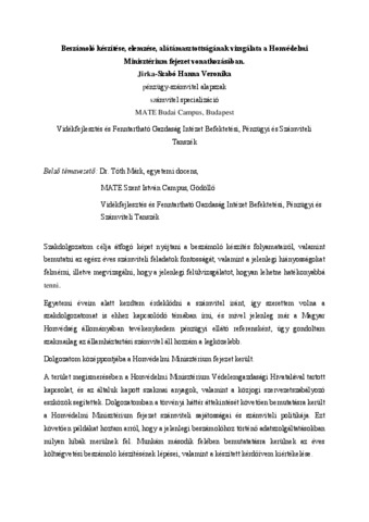 Jirka-Szabó, Hanna Veronika (2024) Beszámoló készítése, elemzése, alátámasztottságának vizsgálata a Honvédelmi Minisztérium fejezet vonatkozásában. Diploma Tézis, Magyar Agrár- és Élettudományi Egyetem.