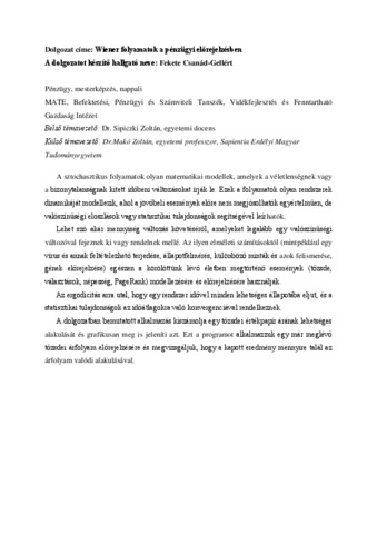 Fekete, Csanád Gellért (2025) Wiener folyamatok a pénzügyi előrejelzésben. Diploma Tézis, Magyar Agrár- és Élettudományi Egyetem.
