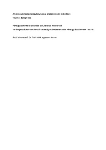 Thürmer-Balogh, Kíra (2024) A közösségi média manipulatív hatása a kriptotőzsdei működésre. Diploma Tézis, Magyar Agrár- és Élettudományi Egyetem.