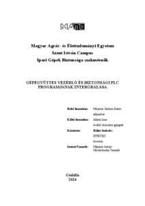 Bálint, Szabolcs (2024) GÉPEGYÜTTES VEZÉRLŐ ÉS BIZTONSÁGI PLC PROGRAMJÁNAK INTERGRÁLÁSA. Diploma Tézis, Magyar Agrár- és Élettudományi Egyetem.