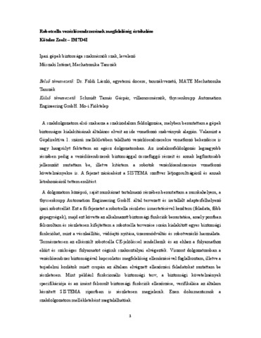 Köteles, Zsolt (2024) ROBOTCELLA VEZÉRLŐRENDSZERÉNEK MEGFELELŐSÉG ELLENŐRZÉSE. Diploma Tézis, Magyar Agrár- és Élettudományi Egyetem.