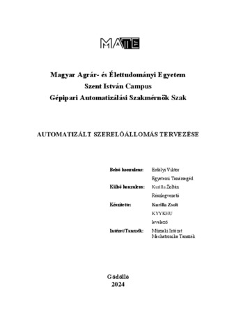 Kurilla, Zsolt (2024) Automatizált szerelőállomás tervezése. Diploma Tézis, Magyar Agrár- és Élettudományi Egyetem.
