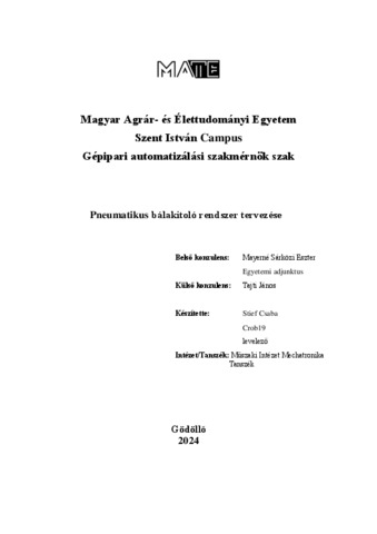 Stief, Csaba (2024) Pneumatikus bálakitoló rendszer tervezése. Diploma Tézis, Magyar Agrár- és Élettudományi Egyetem.