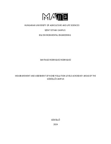 Rodriguez Rodriguez, Santiago (2024) Measurement and assessment of noise Pollution Levels Across Key Areas of the Godollo Campus. Diploma Tézis, Magyar Agrár- és Élettudományi Egyetem.