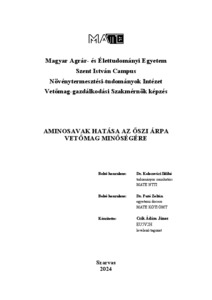 Csík, Ádám János (2024) AMINOSAVAK HATÁSA AZ ŐSZI ÁRPA VETŐMAG MINŐSÉGÉRE. Diploma Tézis, Magyar Agrár- és Élettudományi Egyetem.