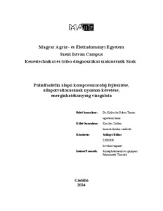 Szilágyi, Bálint István (2024) Polialfaolefin alapú kompresszorolaj fejlesztése, állapotváltozásának nyomon követése, energiahatékonyság vizsgálata. Diploma Tézis, Magyar Agrár- és Élettudományi Egyetem.
