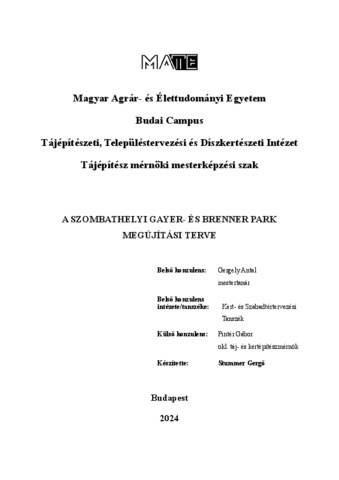 Stummer, Gergő (2025) A szombathelyi Gayer- és Brenner park megújítási terve. Diploma Tézis, Magyar Agrár- és Élettudományi Egyetem.