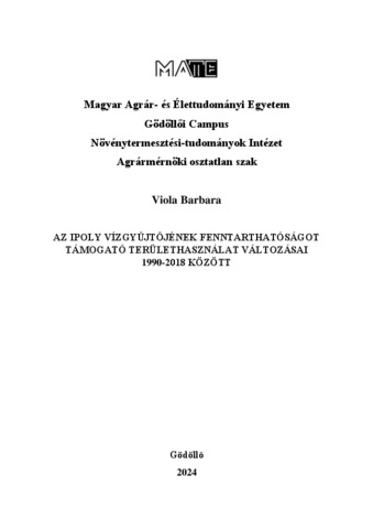 Viola, Barbara (2024) Az Ipoly vízgyűjtőjének fenntarthatóságot támogató területhasználat változásai 1990-2018 között. Diploma Tézis, Magyar Agrár- és Élettudományi Egyetem.