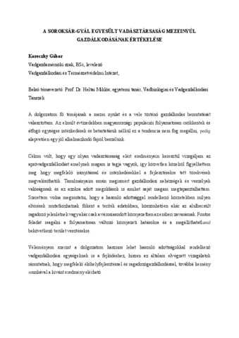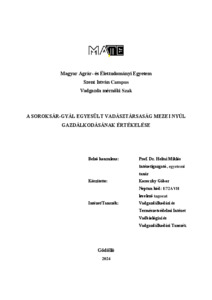 Koreczky, Gábor (2024) A Soroksár-Gyál Egyesült Vadásztársaság Mezei Nyúl Gazdálkodásának Értékelése. Diploma Tézis, Magyar Agrár- és Élettudományi Egyetem.