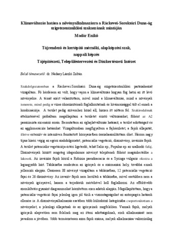 Madár, Enikő (2024) Klímaváltozás hatása a növényalkalmazásra a Ráckevei-Soroksári Duna-ág szigetszentmiklósi szakaszának mintáján. Diploma Tézis, Magyar Agrár- és Élettudományi Egyetem.