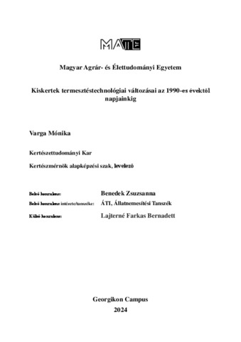 Varga, Mónika (2024) Kiskertek termesztéstechnológiai változásai az 1990-es évektől napjainkig. Diploma Tézis, Magyar Agrár- és Élettudományi Egyetem.