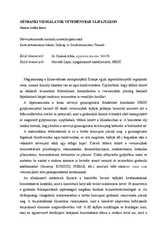 Simon, Attila Imre (2024) Génbanki vizsgálatok veteménybab tájfajtákon. Diploma Tézis, Magyar Agrár- és Élettudományi Egyetem.