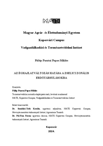Fülöp-Pusztai Pupos, Miklós (2024) Az éghajlatváltozás hatása a zselici zonális erdőtársulásokra. Diploma Tézis, Magyar Agrár- és Élettudományi Egyetem.