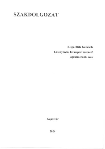 | Kulcsszavak: | 814333777; Élettani és Takarmányozástani Intézet; KAP_C; Lótenyésztő, lovassport szervező agrármérnöki; alapképzés (BA/BSc/BProf); B-KAP-N-HU-LOLOV; 814333777.pdf; 814333777_szdkivonat1.pdf |