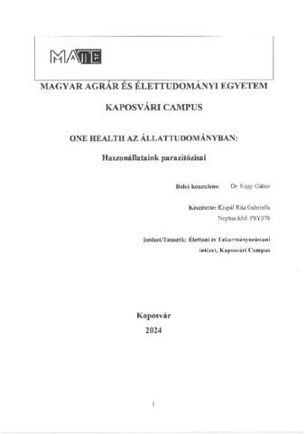Kispál, Rita Gabriella (2024) One Health az állattudományban: Haszonállataink parazitózisai. Diploma Tézis, Magyar Agrár- és Élettudományi Egyetem.