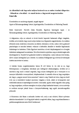 Ruisz, Lilla (2024) Az állatokkal való kapcsolat milyen hatással van az ember érzelmi állapotára - fókuszban a lovakkal - és ennek hatása a fogyasztói magatartásukra. Diploma Tézis, Magyar Agrár- és Élettudományi Egyetem.