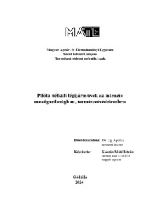 Kóczán, Máté István (2024) Pilóta nélküli légijárművek az intenzív mezőgazdaságban, természetvédelemben. Diploma Tézis, Magyar Agrár- és Élettudományi Egyetem.