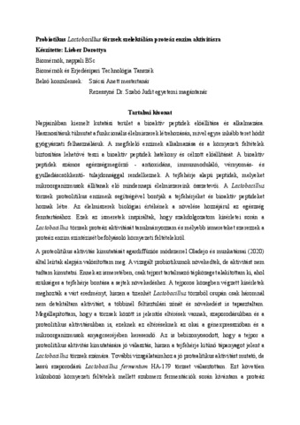 Lieber, Dorottya (2024) Probiotikus Lactobacillus törzsek szelektálása proteáz enzim aktivitásra. Diploma Tézis, Magyar Agrár- és Élettudományi Egyetem.