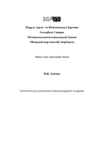 Bali, Antónia (2024) Szőlőültetvény-permetezés hatékonyságának vizsgálata. Diploma Tézis, Magyar Agrár- és Élettudományi Egyetem.